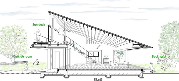 別墅設計,四坡屋頂別墅別墅位于茨城縣新開發(fā)區(qū)”里山”或半自然林地將要出售的一個地段??蛻粢蟊容^簡單:創(chuàng)建一個私人住宅并設有兩個車庫。利用這一區(qū)域,設計團隊提出“寬敞的平房平臺”概念,作為一個開放的空間與周圍的鄰居共享,達到空間與自然的連接。