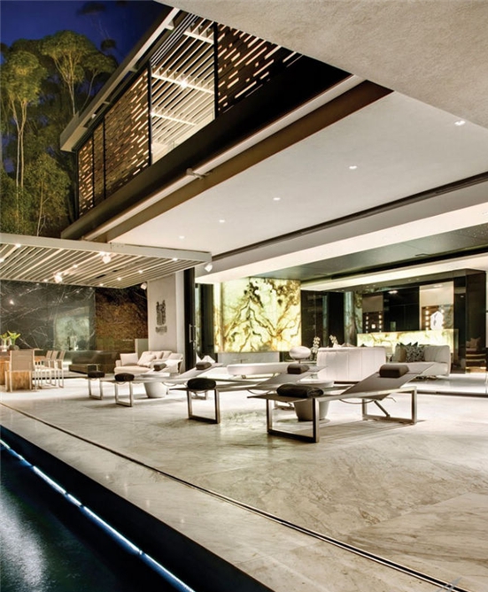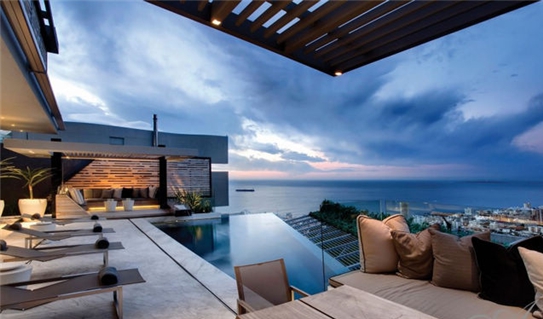 別墅坐落在開普敦的某山坡上,超豪華的現(xiàn)代設計風格,在別墅可以俯瞰大西洋沿海和羅賓島,風景無敵。戶外娛樂區(qū)域是整個建筑的亮點,娛樂功能很齊全,有一個觀景亭、戶外燒烤區(qū)、泳池以及其他的休閑娛樂設備,燈光照明設計給別墅整體設計增色不少。室內(nèi)空間還有健身房和家庭影院等娛樂設施。