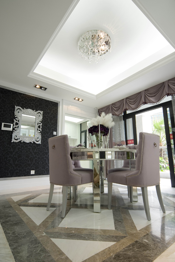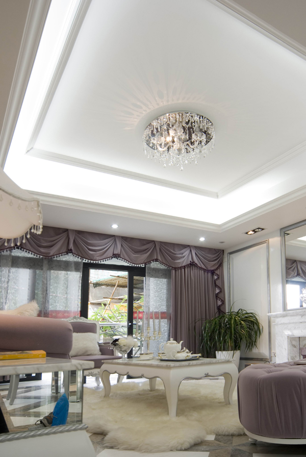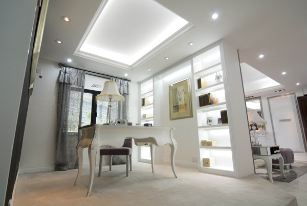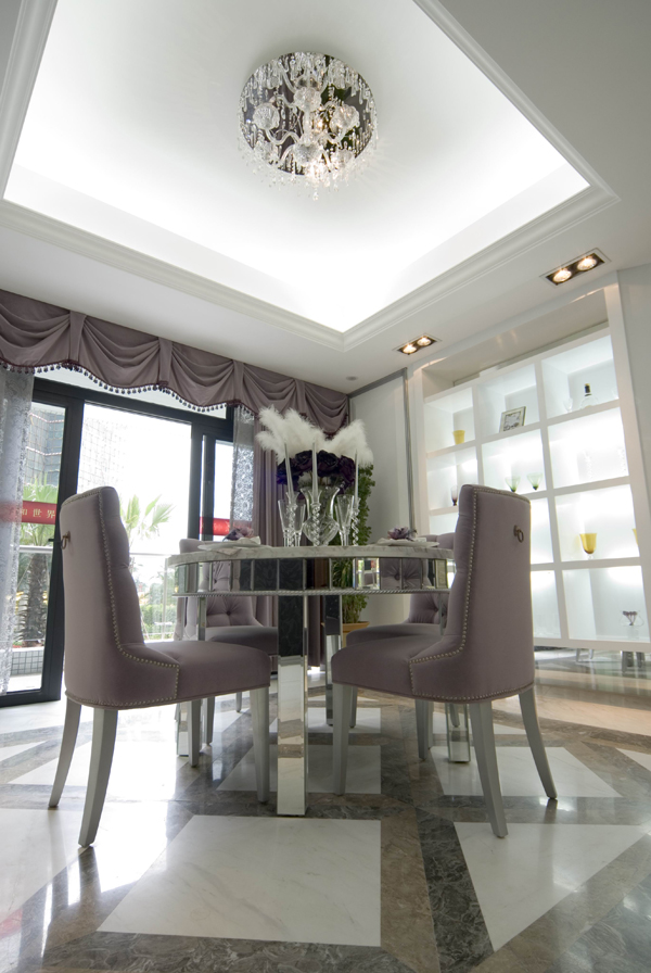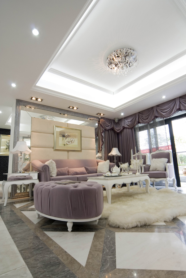 再結(jié)合華麗 古典的歐式家具.高貴的水晶吊燈,更顯出本示范位單的國際品位。希望使你置身于一個白色的王國里 ,成為童話里的主角。