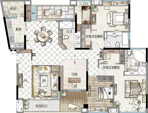 本設(shè)計理念來自于白色的王國。歐洲一個令人向往的國家,無論建筑到室內(nèi)裝飾元素都充滿著古典.高雅.的貴族氣派。本示范單位裝飾元素就是來源于這里的。從空間來說,以開放,明亮為主。當(dāng)你步進室內(nèi),你就會感受到客廳 餐廳 書房的空間即獨立又共享。房間里的衣帽間開放處理,使空間便加實用 靈活。