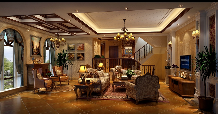 躍層、別墅等戶(hù)型的客廳挑空過(guò)高,設(shè)計(jì)師應(yīng)該解決視覺(jué)的舒適感受,具體做法是,采用體積大、樣式隆重的燈具彌補(bǔ)高處空曠的感覺(jué)。分隔線(xiàn):在合適的位置圈出石膏線(xiàn),或者用窗簾將客廳垂直分成兩層,令空間敞闊豪華而不空曠。