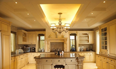 與普通消費(fèi)者相比,別墅的房主更注重整體廚房的美學(xué)效果、藝術(shù)協(xié)調(diào)和品牌。簡單地說即是整體的設(shè)計(jì)感、個(gè)性化,同時(shí)功能要齊全。廚房可以顯示主人的品位,這種品位主要體現(xiàn)在一些有創(chuàng)意的設(shè)計(jì)上,別墅廚房吊柜可以設(shè)計(jì)一些玻璃門或吊格,柜內(nèi)安裝圓杯燈,便于存放收藏品或書籍。