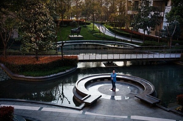 30歲的企業(yè)家丹尼爾·張在家中小區(qū)的花園內(nèi)。丹尼爾的家坐落在天價樓盤”湯臣一品內(nèi)。