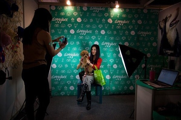 上海世博會展中心舉行的一場名狗展上,24歲的李燁(音譯)與自己的狗合影。