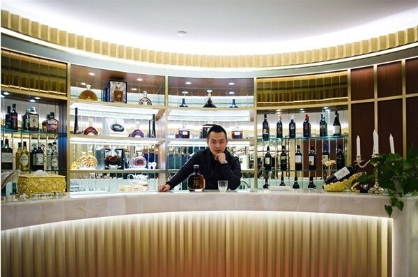 上海,保羅·胡在自己公司的吧臺內(nèi)。