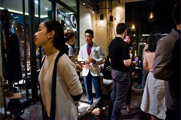 上海,Pistacchio咖啡店內(nèi)正在舉行的意大利手工定制服裝展示會。