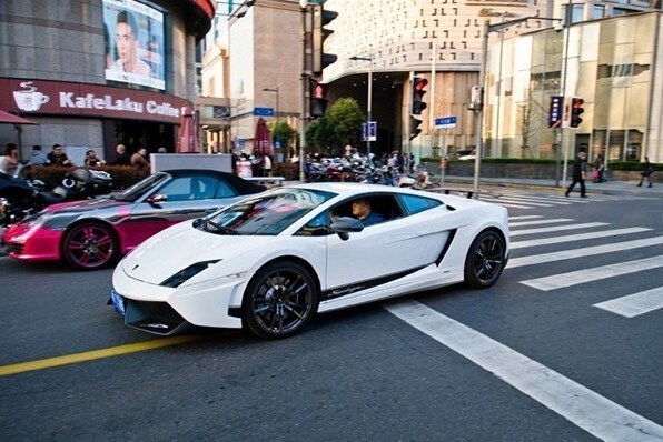 南京西路附近駛過的蘭博基尼。