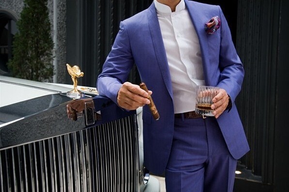中國企業(yè)家塔羅斯拿著雪茄站在自己的座駕——一輛勞斯萊斯旁。